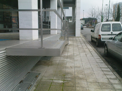 Já neste blog se estranhou que num edificio com meia dúzia de anos seja preciso por um apêndice para acesso de cadeiras de rodas.