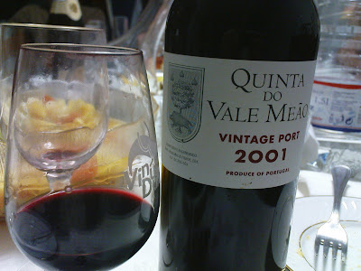 Para acompanhar aquilo, teria sido melhor um Porto Vintage, mas este Blog segue a religião segundo a qual o Vintage deve ser servido com cuidados que não estavam ao nosso alcance, nomeadamente repousar na sala onde será servido por 24 horas e ser aberto pelo menos 2 horas antes. De maneira que bebemos este, que estava "de marabilla".